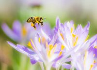 Koop dit bloemen kunstwerk Macrofoto van een paarse krokus en een bij van ManfredFotos op canvas, aluminium dibond, (ingelijste) fotoprint, behang en ArtFrame, op maat geprint in Fine-Art kwaliteit.