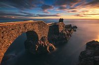 De iconische loopbrug van het stadje Ponta do Sol in het prachtige avondlicht.