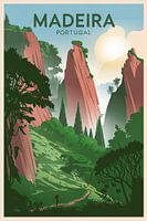 In het hart van Madeira ontvouwt zich een fascinerend landschap: machtige, ruige kliffen rijzen majestueus op uit het weelderige groen, terwijl zachte nevels het landschap omhullen. Stralend licht breekt door de wolken en laat de diversiteit van de natuur doorschijnen. Dit landschap nodigt je uit om de wonderen der natuur te ontdekken en te genieten van het avontuur.