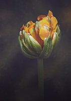 Enkele steel van een geel en groene Papegaaitulp