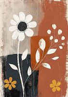 Details: bloemen, madelief, flora, natuur, gestileerd, aardetinten, geel, wit, abstract, sierlijk