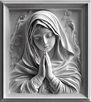 Sereen, dat is het juiste woord wanneer je dit beeld ziet, als ware het uit marmer gehouwen. Zoals een Madonna betaamt, zijn haar ogen neergeslagen, waardoor haar gedachten de ruimte krijgen om een troostende boodschap te vormen, een boodschap die ieder mens diep in zijn hart soms nodig heeft. Met haar gevouwen handen versterkt zij deze…