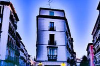 Madrid - gebouw tussen twee straten, coole sfeer overheen