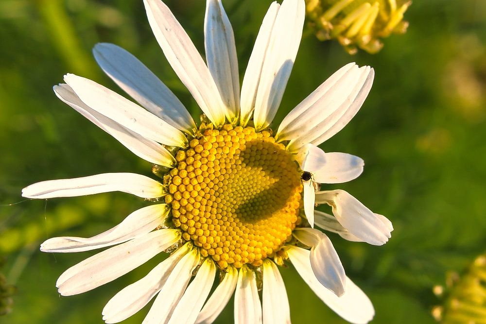 Magaritte met hartschaduw in de bloesem. Romantisch symbool op een bloem