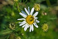 Magaritte met hartschaduw in de bloesem. Romantisch symbool op een bloem