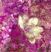 Bloemenschilderij - acrylschilderij met grafische elementen.