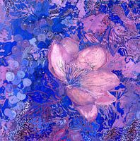 Bloemenschilderij - acrylschilderij met grafische elementen.