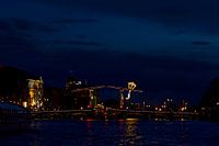 magere brug Amsterdam vanaf de amstel, s'nachts gefotografeerd