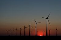 De molen (Goliath) staat in het midden van de moderne windmolens.