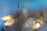 Macrofotografie in de kleuren blauw, goud en grijstinten.