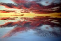 Fantasie zonsondergang met intense rood geel en blauwe kleuren, magie
