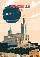 Ontdek de betoverende stad Marseille, Frankrijk. Deze levendige poster toont de iconische basiliek Notre-Dame de la Garde en de charmante haven van de stad, en biedt een kijkje in de schoonheid en geschiedenis van dit mediterrane juweeltje.