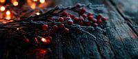 Zachte, gloeiende rode bessen op een rustieke houten achtergrond, omgeven door warm licht - een harmonieus samenspel van natuur en gezelligheid. Deze compositie straalt een uitnodigende sfeer uit die ideaal is voor een woonkamer. Het combineert warmte en elegantie, perfect voor feestelijke gelegenheden of ontspannen avonden.
