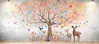 Deze A.I. gecreëerde abstracte foto over een kleurrijk lente achtig dierenrijk. Magisch Hert 2!