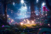 Een magisch bos versierd met kleine lichtjes alsof de bos- en natuurfeeën een feest willen vieren.
