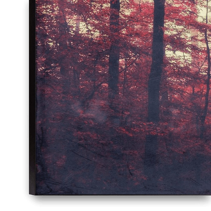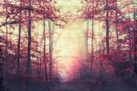 Loofbos op een mistige herfstochtend. Foto die ik heb bewerkt met kleurenfilters en textuur-overlays.