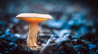 Over ‘Magisch licht doorschijnende witte paddenstoel in een donkere, mystiek bos’ van Fotografiecor .nl