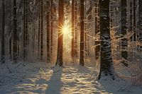 Koop dit landschapskunstwerk Magisch licht in het winterse bos van fernlichtsicht op canvas, aluminium dibond, (ingelijste) fotoprint, behang en ArtFrame, op maat geprint in Fine-Art kwaliteit.