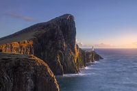 Neist point, deze vuurtoren staat op een prachtige plek in het licht van de ondergaande zon