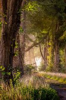 Bospaadje tijdens zonsopkomst in de zomer. Als in een sprookje.