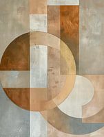 Het abstracte schilderij toont een prachtige symfonie van geometrische vormen, gedompeld in aardse tinten zoals zacht beige en diepbruin. Deze kleuren creëren een warme en uitnodigende sfeer, waardoor de kijker wordt meegevoerd naar een wereld van rust en sereniteit. Met behendige penseelstreken en subtiele overgangen tussen kleuren, weeft het kunstwerk een verhaal van harmonie en balans.