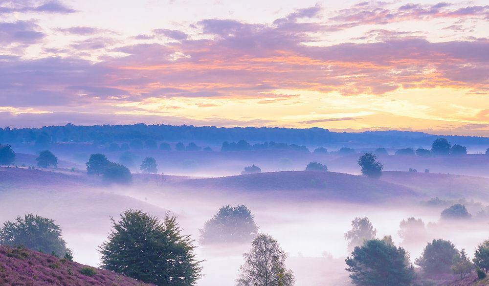 Elk jaar kleurt de heide op de Posbank in Augustus en September paars. Het wordt helemaal spectaculair wanneer er tijdens zonsopkomst grondmist ontslaat.