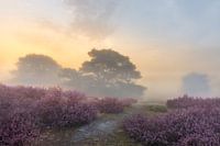 Een magische en mysterieuze zonsopkomst op de Brunssummerheide te Brunssum in Limburg.