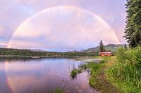 Een prachtige regenboog vormde zich boven turtle lake in het Canadese Wells gray provincial park