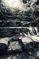 Om magie niet te verstoren blijft het geheim waar de foto gemaakt is, maar het is niet in Nederland. De trap stijgt op vanuit een diepe kloof in een prachtige, groene omgeving.