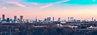 Foto van de skyline van Rotterdam tijdens een magische zonsondergang. De lucht kleurde prachtig blauw en roze ! !
