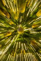 Een foto van kerstballen in een kerstboom met lampjes. Door tijdens de opname in te zoomen op de kerstbal in het midden lijkt deze magnetisch te worden. Zowel het licht als de andere kerstballen worden naar het centrum getrokken.