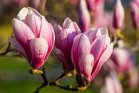 Magnolia bloesem op een magnolia boom in de lente, magnolia, bloeiende magnolia's, tulip magnolia, magnolia plant, Baden-Württemberg, Duitsland
