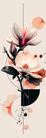 Deze prachtige afbeelding van een magnoliabloesem combineert de delicate elegantie van de natuur met moderne geometrische elementen. De fijne details van de bloemblaadjes contrasteren harmonieus met de strakke lijnen en vormen op de achtergrond, waardoor een unieke visuele ervaring ontstaat. Ideaal voor kunstliefhebbers die een…