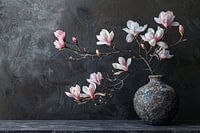 Deze sfeervolle compositie toont een zorgvuldig gearrangeerde magnolia tak in een antieke vaas, tegen een donkere achtergrond. Het verweerde oppervlak van de vaas en de subtiele tinten van de bloemen brengen een gevoel van tijdloze elegantie. Perfect voor het creëren van een rustgevende ambiance in elke ruimte. Het stilleven brengt een stukje natuur binnenshuis, terwijl de historische textuur van de vaas een brug slaat naar het verleden. Dit stuk zou een aanwinst zijn voor een klassiek ingerichte woonkamer, slaapkamer, of als stijlvolle toevoeging aan een kantoor. Het nodigt uit tot contemplatie en bewondering, een ware ode aan de natuurlijke schoonheid en kunstzinnige ambacht.