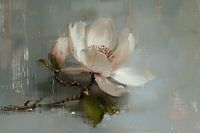 Magnolia in Japandi stijl, pastelkleuren. Kies zelf het formaat en materiaal bij dit werk en maak het helemaal passend voor jouw interieur.