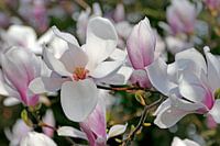 Een wandeling met de camera, een regenbui gevolgd door stralende zon. Dit resulteerde in verschillende foto's van bloeiende magnolia's met glinsterende regendruppels. Hier is er een van.