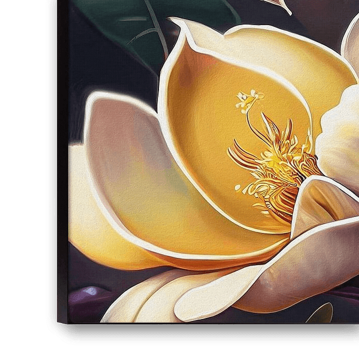 Het geheel is zeer harmonieus en geeft een gevoel van vrede en rust. De magnoliabloesems schitteren in hun schoonheid en presenteren zich trots op de voorgrond. Het beeld is echt geslaagd en het zou zeker een mooie aanwinst zijn voor uw huis.