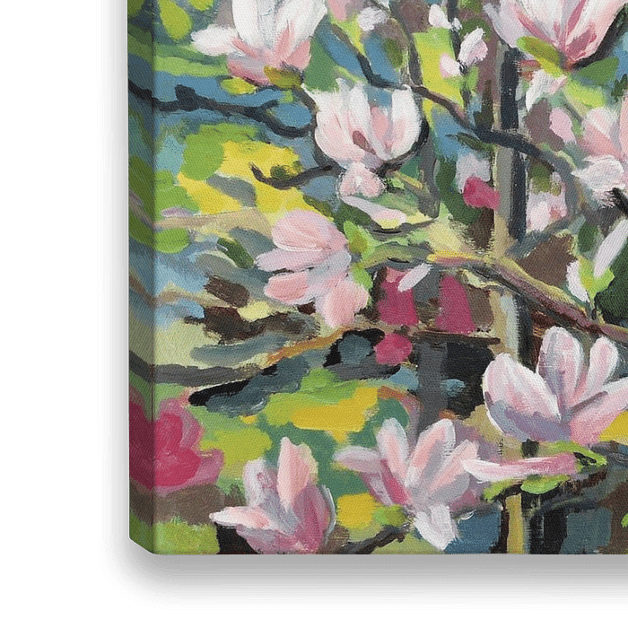 Voor een voorjaarsexpositie maakte ik dit werk. De opdracht was: LENTE & KLEUREXPLOSIE. Dat werd dus de bloeiende magnolia. Een van de eerste bomen die in bloei staan.