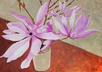 Magnolia van onze tuin geschilderd met acryl op linnen