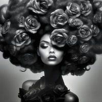 Extravagant portret van een mooie vrouw met zwarte rozen.
