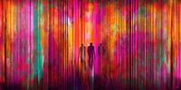 Dit kunstwerk brengt de kijker naar een abstracte, kleurrijke ruimte waar silhouetten van mensen zich door een tunnel van levendige kleuren bewegen. De intensiteit van de achterliggende kleuren in tinten van fuchsia, oranje en turquoise straalt een gevoel van beweging en verbondenheid uit. De abstracte lijnen die door de ruimte trekken, lijken een pad te vormen voor de figuren die naar het onbekende leiden. De subtiele schaduwen van de mensen voegen een mysterieus element toe aan het werk, waarbij de beweging van de figuren door de kleuren een krachtig gevoel van gemeenschap en eenheid oproept. Het kunstwerk biedt een visuele reis die zowel de fysieke als spirituele transformatie weerspiegelt.