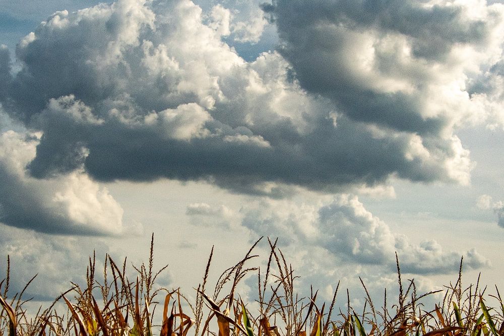 De wolk op zo'n prachtige zomerdag net boven het maaiveld - maisveld