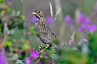 Grauwe gors aan het foerageren.