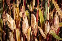 Mooi ochtend zonlicht op deze rijpe maiskolven aan de rand van een veld