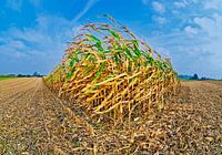 Gedeeltelijk geoogst maïsveld in de herfst, Oostenrijk