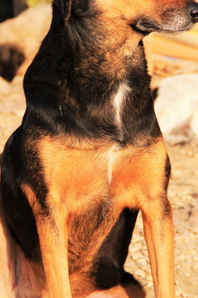 Maja kan heerlijk genieten van het zonnetje! Maj woont bij Daniela in haar shelter in Macedonie.