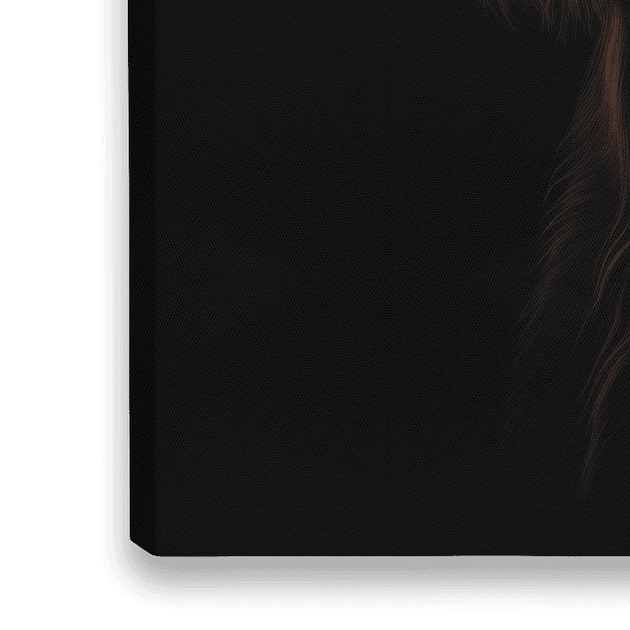 "Majesteit van de Nacht" toont een Schotse Hooglander op een bijna mythische manier, met een diepe, zwarte achtergrond die de robuuste textuur van zijn vacht en de zachtheid van zijn blik versterkt. Het gebruik van licht en schaduw geeft de afbeelding een dramatisch effect, waarbij de gouden gloed van de vacht en de helderheid in de…