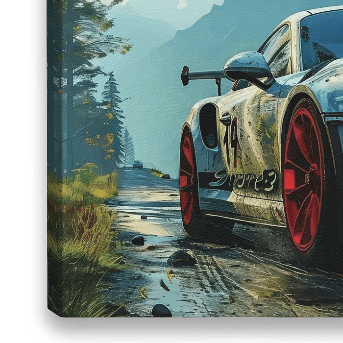 Ervaar de sensatie van het rijden over kronkelende bergwegen met deze adembenemende poster met een Porsche 911 GT3 RS. Het gestroomlijnde design en de krachtige houding van de auto worden perfect aangevuld door de prachtige natuurlijke achtergrond.