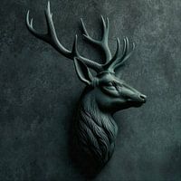 Een gedetailleerd, gestructureerd portret van een hert met een imposant gewei tegen een donkere achtergrond - een symbool van kracht, gratie en nabijheid tot de natuur. De sculpturale voorstelling en het spel van licht en schaduw geven het werk diepte en aanwezigheid.
