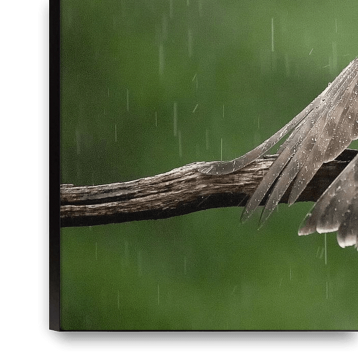 De sperwer dame lijkt wel een koninklijke mantel te dragen, zoals ze hier in de regen zit.